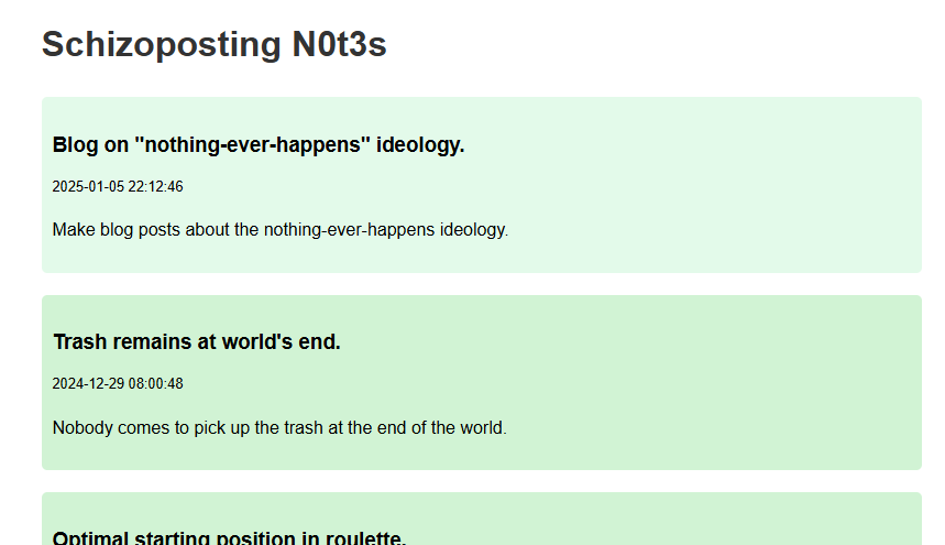 Introducing Schizoposting.com, coined from the popular, though poorly undefined, internet meme of schizoposting, the site features a dead-plain-simple solution to host bookmarked thoughts.