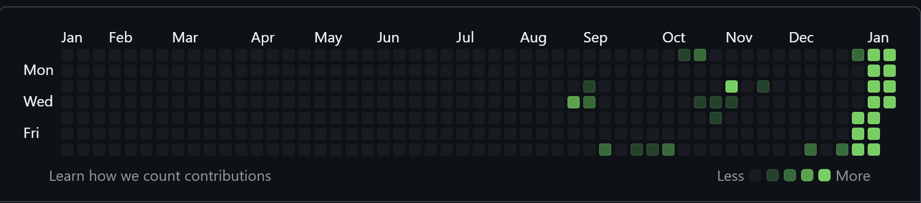 The noncommit dates were just figured out by hand in excel (the goat) so that by the end of the year my repo will spell ‘PAT’.